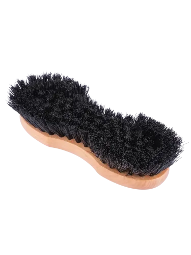 A cleaning brush with horsehair bristles and a flexible back.