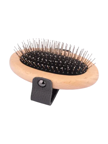 This long-hair brush is gentle on both hair and skin thanks to its rounded pin heads. For very tangled hair, using a mane spray before brushing is recommended to ensure smooth and safe grooming.