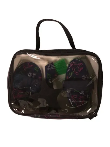Maui grooming set includes everything needed for daily horse care. The set contains a sponge, hoof scraper, horse brush, and curry comb, all made of plastic and easy to clean. Supplied in a practical bag.