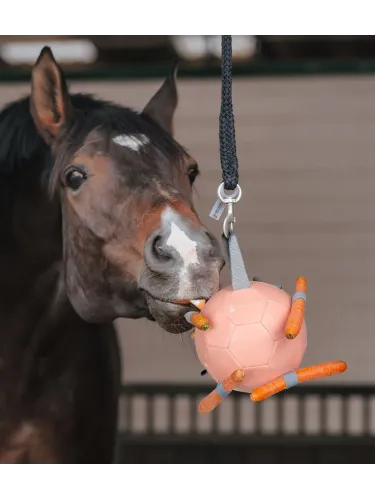 Smart combination of a lick holder and play ball that can be hung in the stable or paddock. Reduces stress and boredom by providing engaging activity for your horse, even when you're not around.