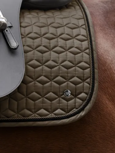 This classic saddle pad combines style and functionality for every ride. The distinctive quilting, decorative cords, and metal plate add elegance, while the breathable underside ensures optimal airflow to your horse’s back. With 10 mm foam and 200 g/m² padding, it provides excellent pressure distribution.